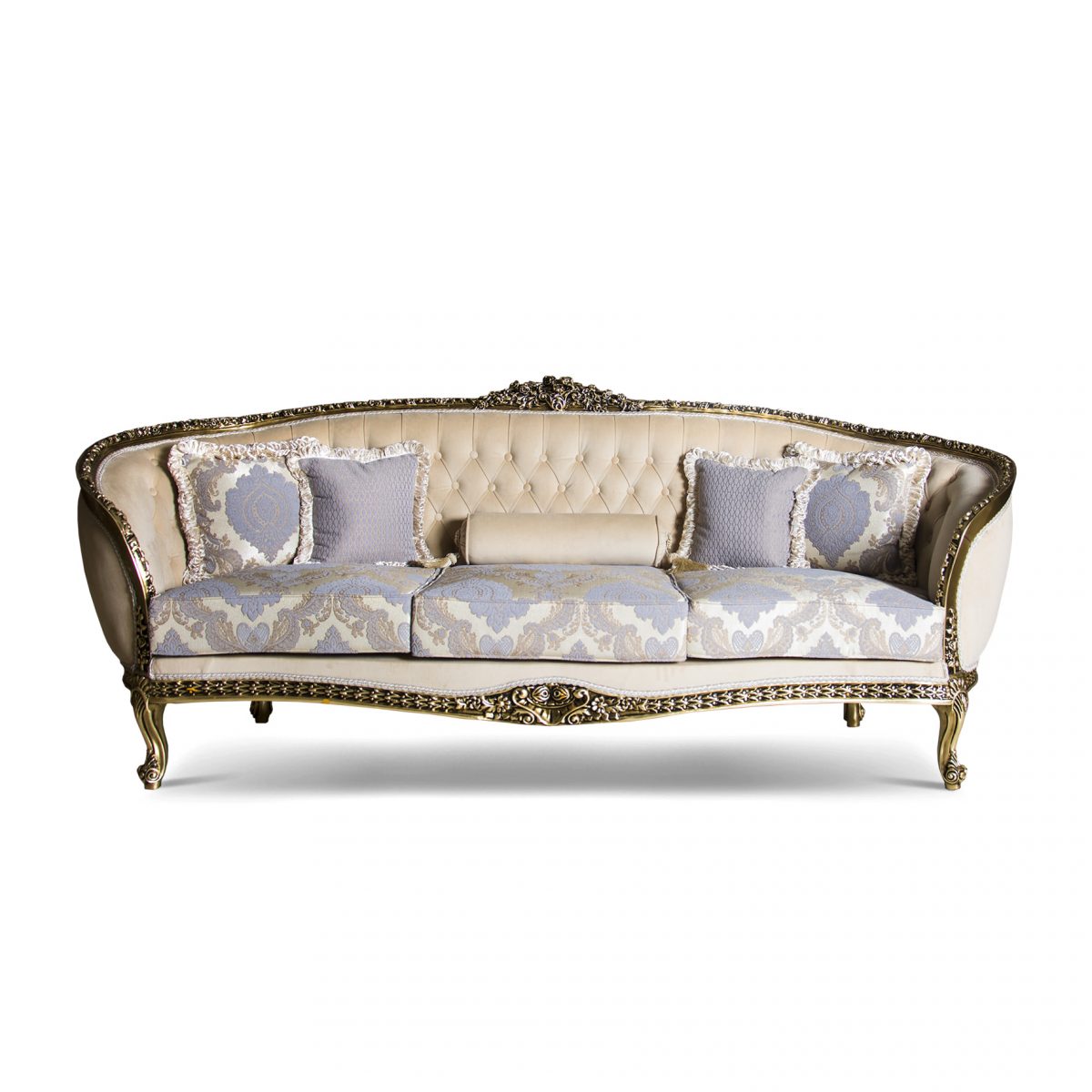 طرح و نقش پارچه و همچنین طرح های منبت کاری شده بر روی دسته، پایه و تاج این مبل توجه علاقه مندان به سبک کلاسیک را جلب خواهد کرد. این مبل زیبا که متشکل از یک کاناپه 3 نفره، یک کاناپه لاوست و چهار عدد صندلی تک نفره می باشد از بهترین متریال ساخته شده است، بسیار قوی و با دوام می باشد.